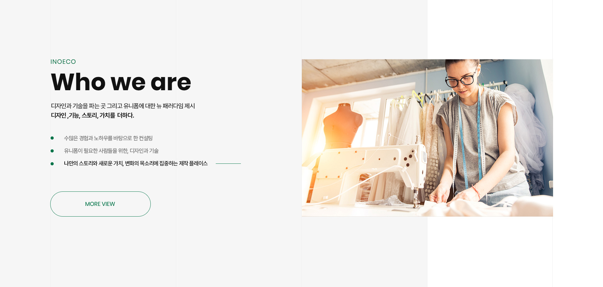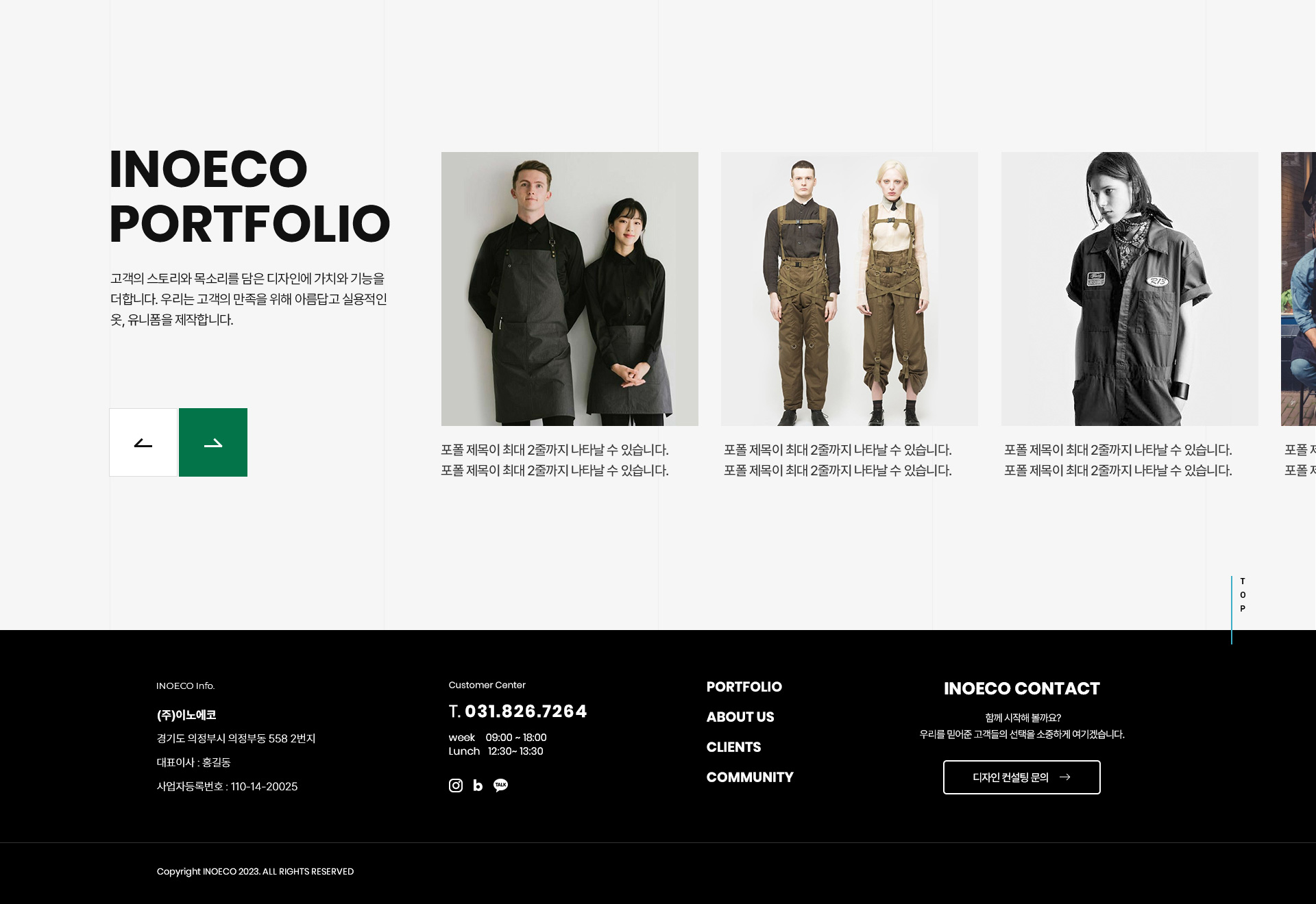 이노에코는 기업유니폼 B2B회사로 기업이 요구하는 컨셉에 맞게 그들이 일을 할 때 입는 근무복, 작업복, 등 워크웨어를 제작하는 회사입니다.