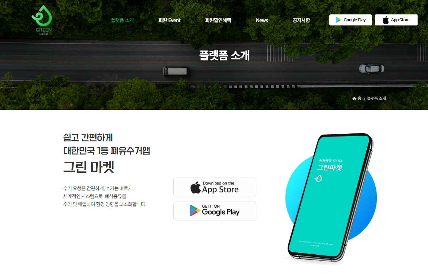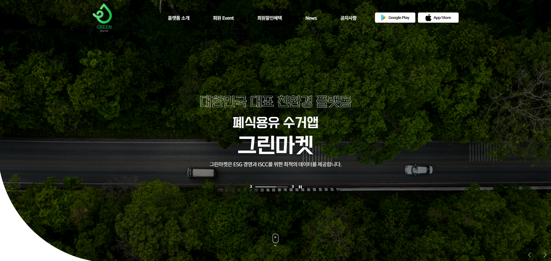 그린마켓은 폐식용유 수거앱 전문회사로 IOS 및 안드로이드에서 해당 앱을 다운로드 받아 사용할 수 있는 대한민국 대표 친환경 플랫폼 입니다.