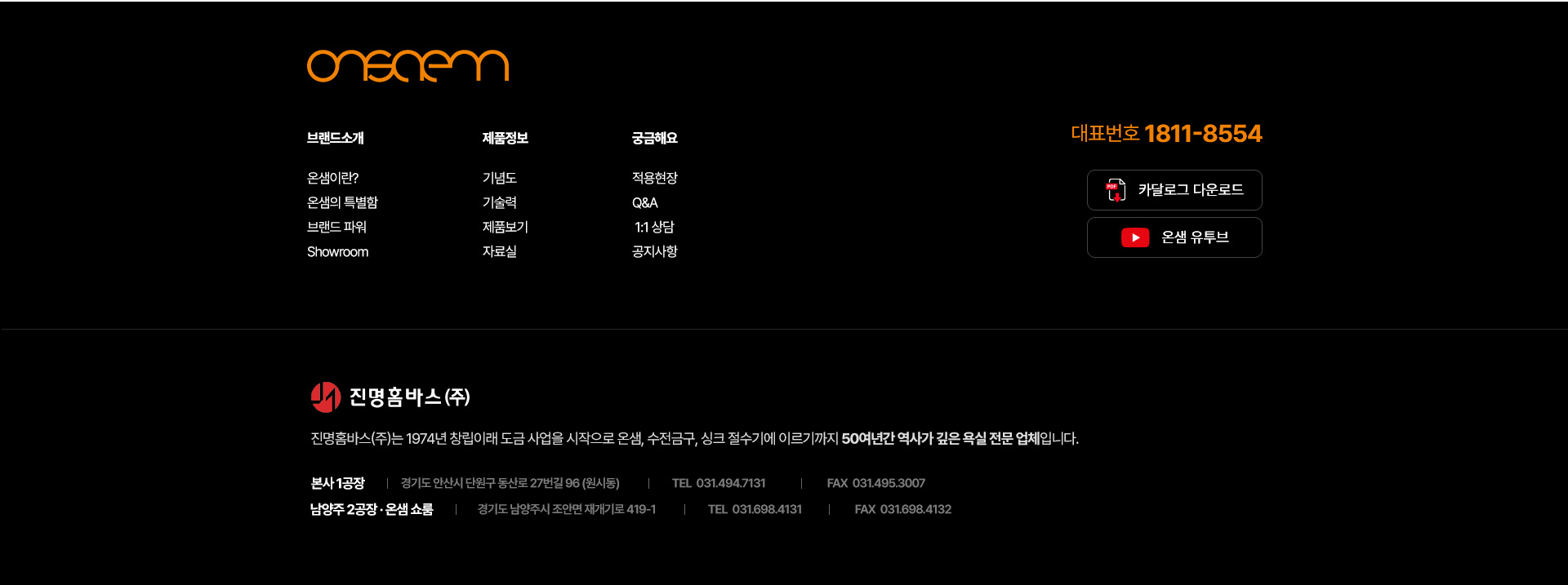 2017년에 진명홈바스 홈페이지를 제작해드린 후에 꾸준히 유지보수를 진행해드렸는데, 진명홈바스에서 신개념 욕실 시스템인 온샘(Onsaem) 브랜드를 런칭하면서 브랜드 홍보 사이트 제작을 의뢰해주셨습니다.