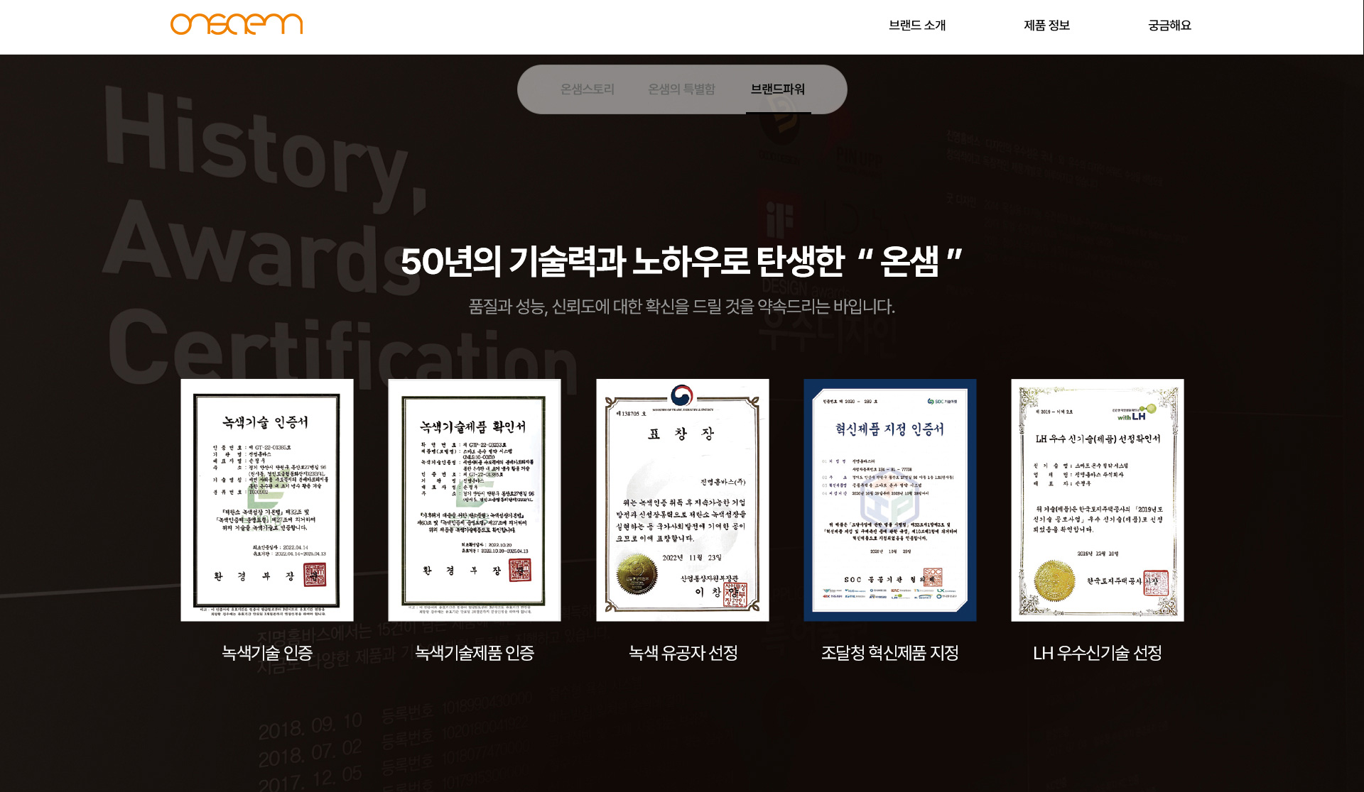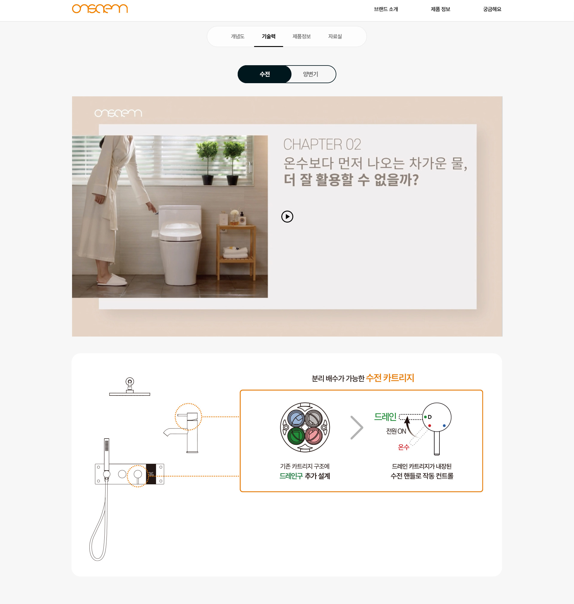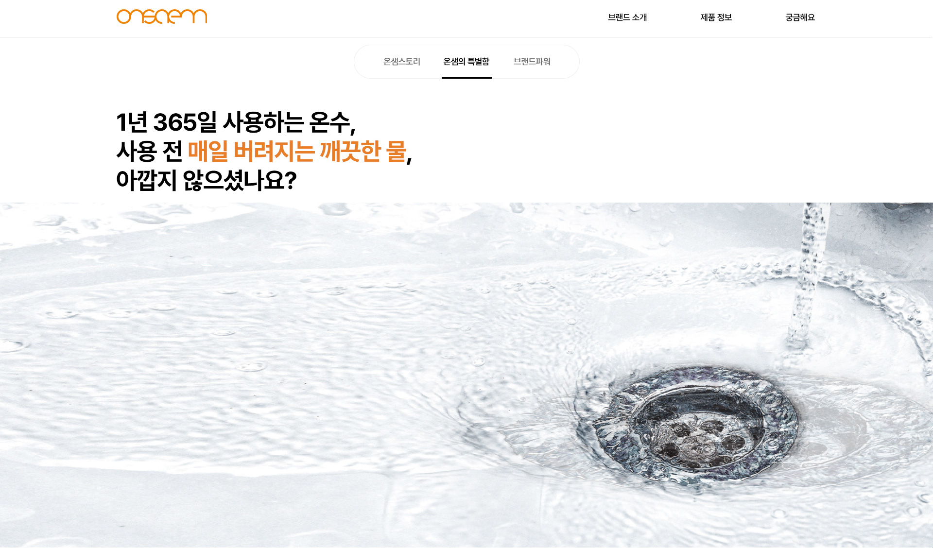 직접 남양주 본사를 찾아서 해당 욕실 시스템인 온샘에 대한 기술 소개를 영상으로 보면서, 중소기업 50년의 기술력과 노하우로 탄생한 이 브랜드를 확실히 홍보해드리고 싶단 생각으로 사이트의 디자인과 컨셉을 잡으면서 저희도 나름 재미있고 뿌듯했던 작업이었으며, 클라이언트의 만족감이 높았던 결과물이였기에 온샘 브랜드의 특별함과 브랜드 파워를 한단계 업그레이드 시켜드린 프로젝트임을 자부합니다.