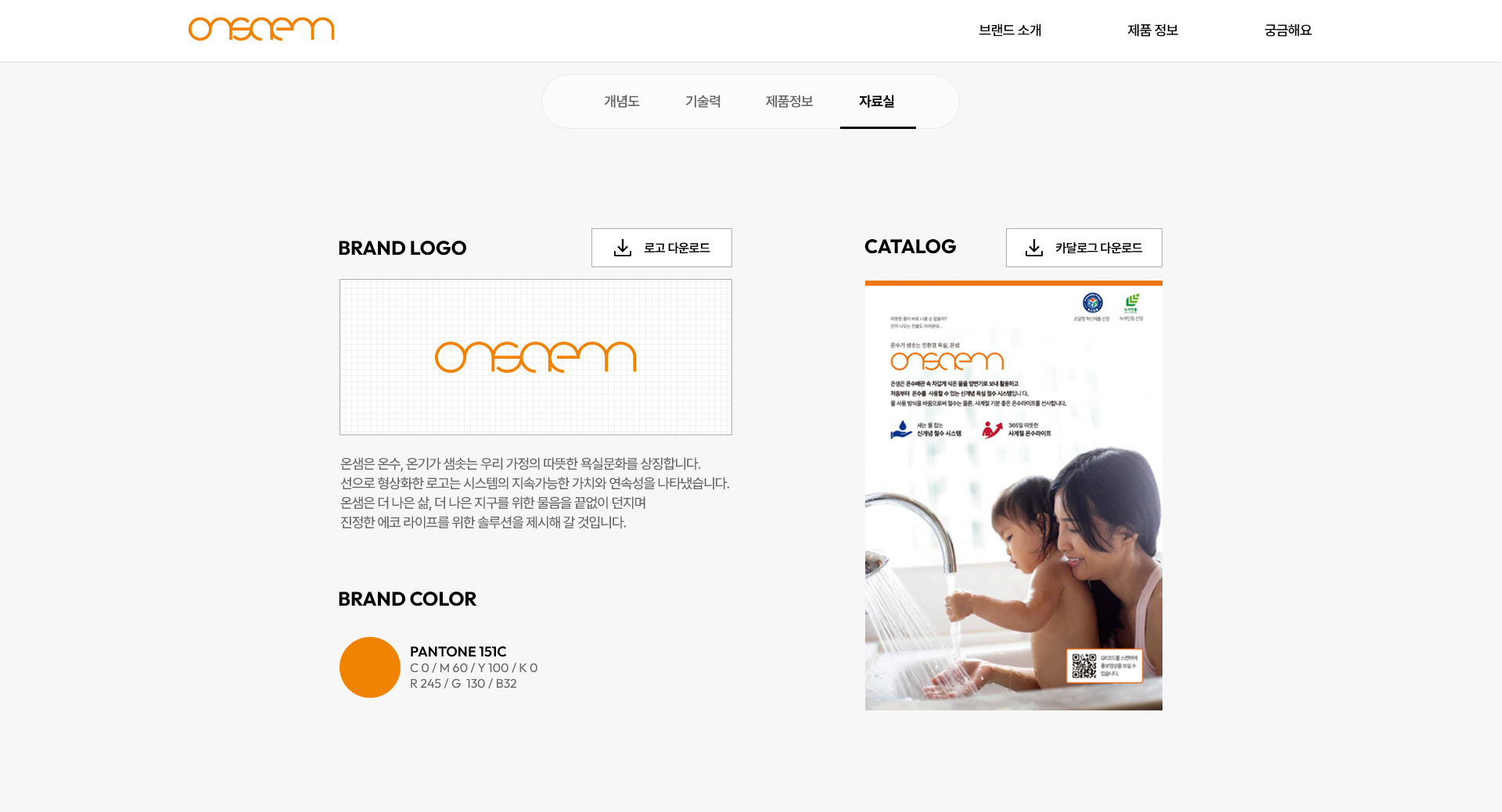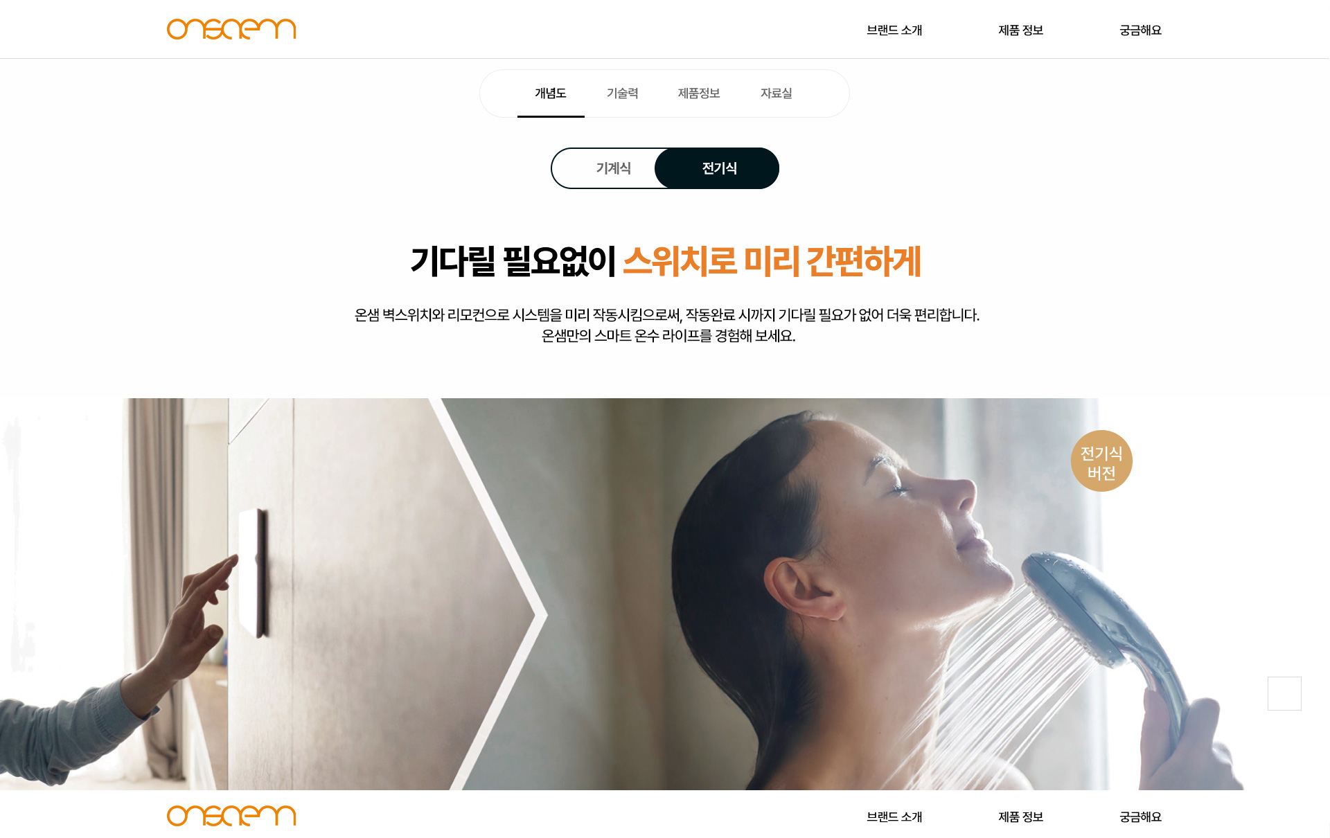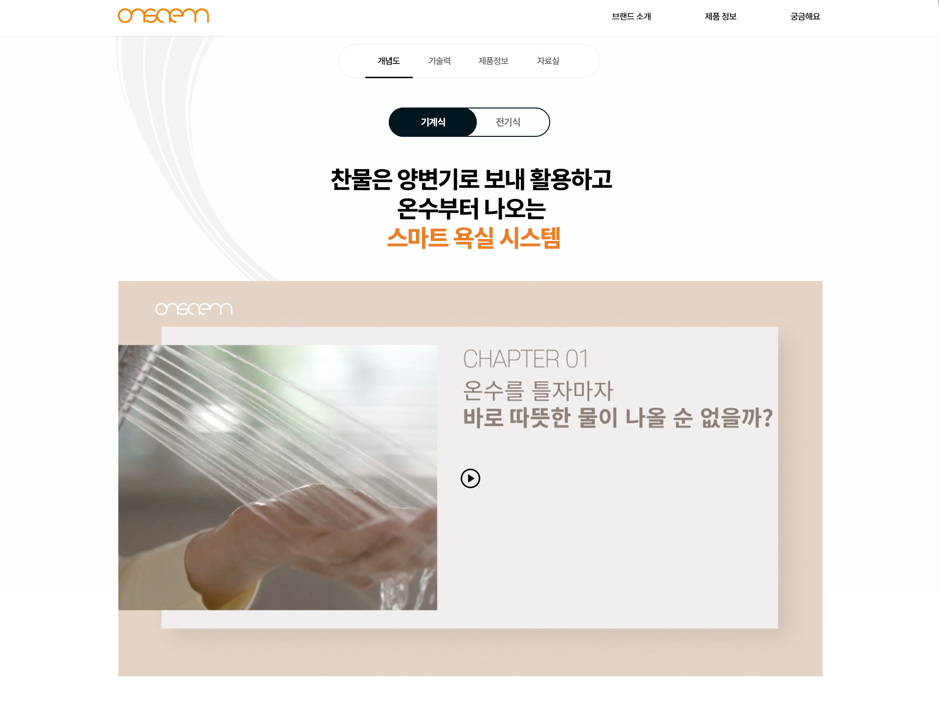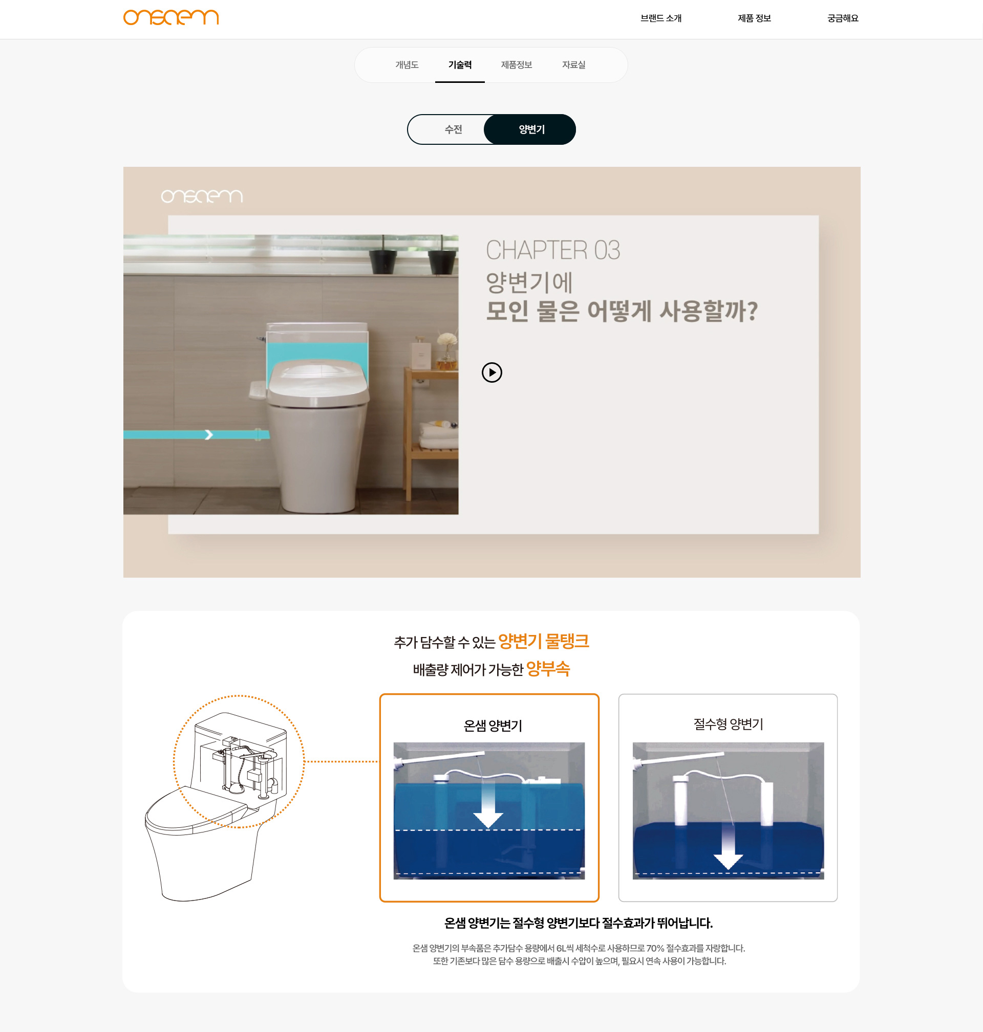 직접 남양주 본사를 찾아서 해당 욕실 시스템인 온샘에 대한 기술 소개를 영상으로 보면서, 중소기업 50년의 기술력과 노하우로 탄생한 이 브랜드를 확실히 홍보해드리고 싶단 생각으로 사이트의 디자인과 컨셉을 잡으면서 저희도 나름 재미있고 뿌듯했던 작업이었으며, 클라이언트의 만족감이 높았던 결과물이였기에 온샘 브랜드의 특별함과 브랜드 파워를 한단계 업그레이드 시켜드린 프로젝트임을 자부합니다.