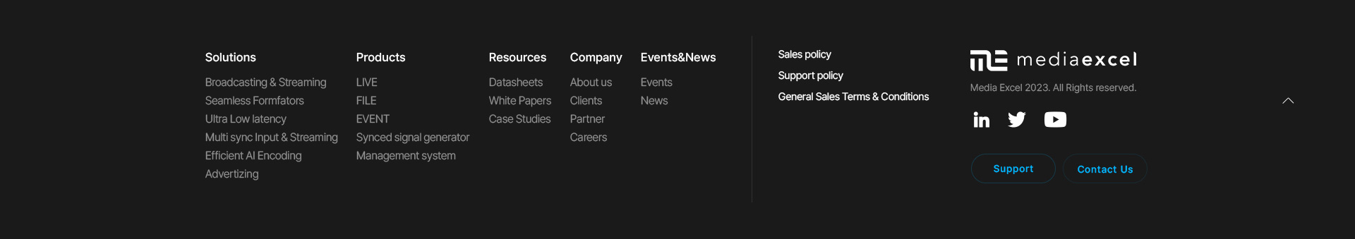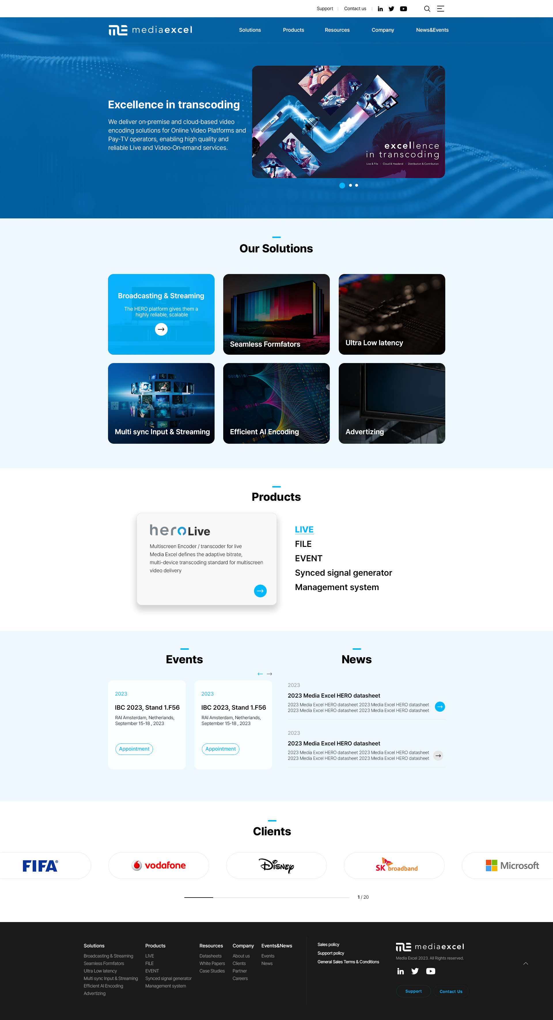 미디어엑셀(mediaexcel)은 외국 방송장비 관련 사업자와 개발자를 대상으로 솔루션을 제공해주는 글로벌 기업으로 다양한 솔루션에 대한 소개와 제품들에 대한 Datasheets를 효과적으로 제공해주는 기능이 포함된 영문 회사 홈페이지입니다.